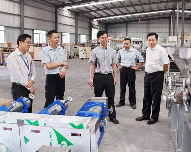 李局長(zhǎng)一行來(lái)到公司就深入車(chē)間了解生產(chǎn)情況,在河粉機(jī)裝配車(chē)間李局長(zhǎng)詳細(xì)詢(xún)問(wèn)了河粉機(jī)的功能原理和價(jià)格,當(dāng)?shù)弥獓?guó)研牌河粉機(jī)占領(lǐng)了國(guó)內(nèi)主要市場(chǎng)時(shí)十分高興。李局長(zhǎng)一行還在公司黨支部活動(dòng)室觀看了廣州電視臺(tái)播出的報(bào)道我司開(kāi)展黨建工作的《紅棉璀璨》專(zhuān)題節(jié)目,隨后開(kāi)展了討論,對(duì)我司黨建工作開(kāi)展的有聲有色給予了高度評(píng)價(jià)。
