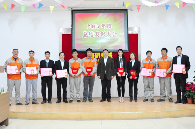 2016年2月24日晚,廣州市國(guó)研機(jī)械設(shè)備制造有限公司全體同仁,在公司會(huì)議室召開(kāi)了2015年度表彰大會(huì)。會(huì)上對(duì)公司年度銷(xiāo)售冠軍、工廠創(chuàng)新能手及優(yōu)秀員工、先進(jìn)集體和班組進(jìn)行了表彰。