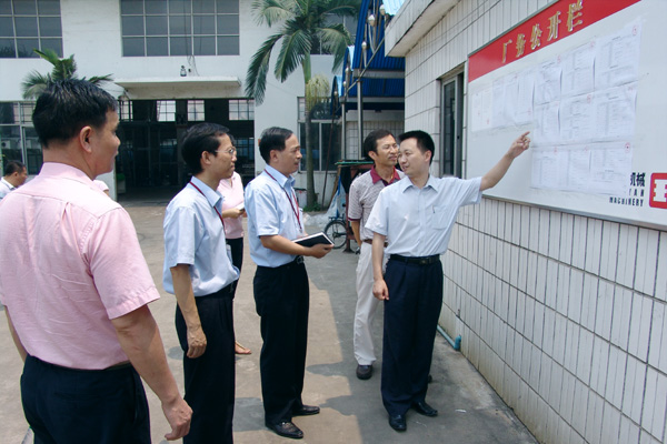 2010年8月5日上午,廣州市天河區(qū)廠務(wù)公開檢查組在區(qū)委組織部副部長郭明富、天河區(qū)工商業(yè)聯(lián)合會秘書長利響率領(lǐng)下對我司廠務(wù)公開工作進行檢查指導(dǎo),公司黨支部書記兼廠務(wù)公開領(lǐng)導(dǎo)小組組長王聲躍、工會主席兼廠務(wù)公開監(jiān)督小組組長劉啟剛陪同檢查并向檢查組領(lǐng)導(dǎo)一行做了工作匯報。