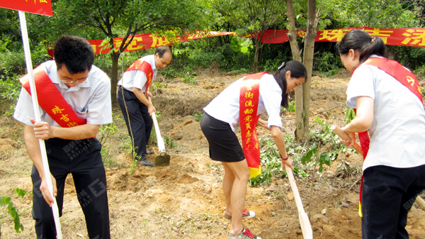 簡(jiǎn)單的啟動(dòng)儀式之后,大家高舉黨旗,直奔植樹(shù)活動(dòng)現(xiàn)場(chǎng)。各位黨員、入黨積極分子不顧炎熱,二人或三人一組,互相配合協(xié)作,有的揮鍬填土、有的扶苗加固、有的提水澆灌,現(xiàn)場(chǎng)一派熱火朝天的景象。在大家的共同努力下,二百多棵樹(shù)苗很快栽植完畢,原本毫無(wú)生機(jī)的荒地轉(zhuǎn)眼已是綠意盎然。一場(chǎng)及時(shí)雨之后,小樹(shù)苗更是棵棵充滿生命的活力。